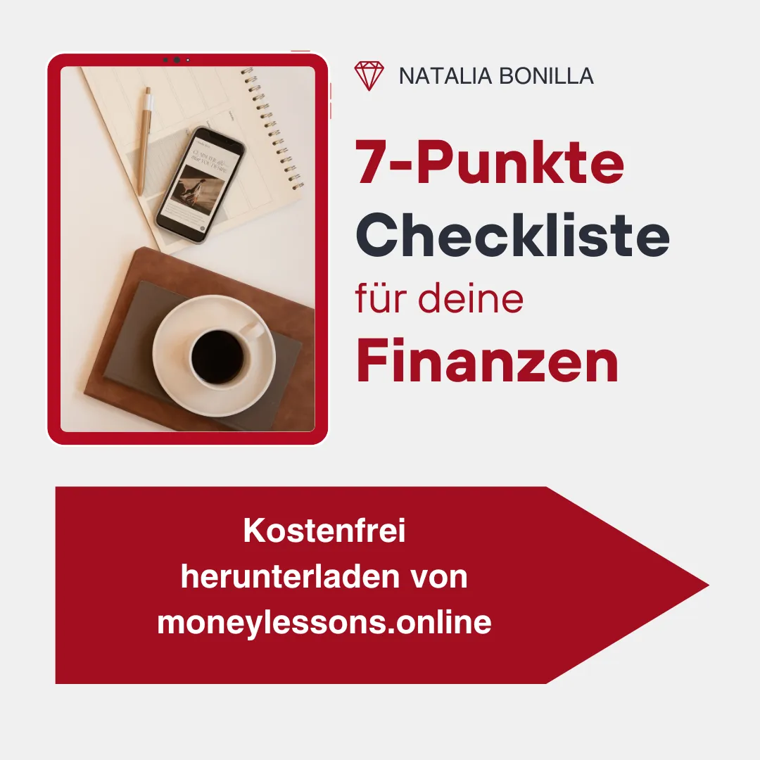 Erhalte eine FREIE KOPIE von “7 Punkte Checkliste für deine Finanzen” & entdecke die genauen Schritte zur finanziellen Kontrolle!
